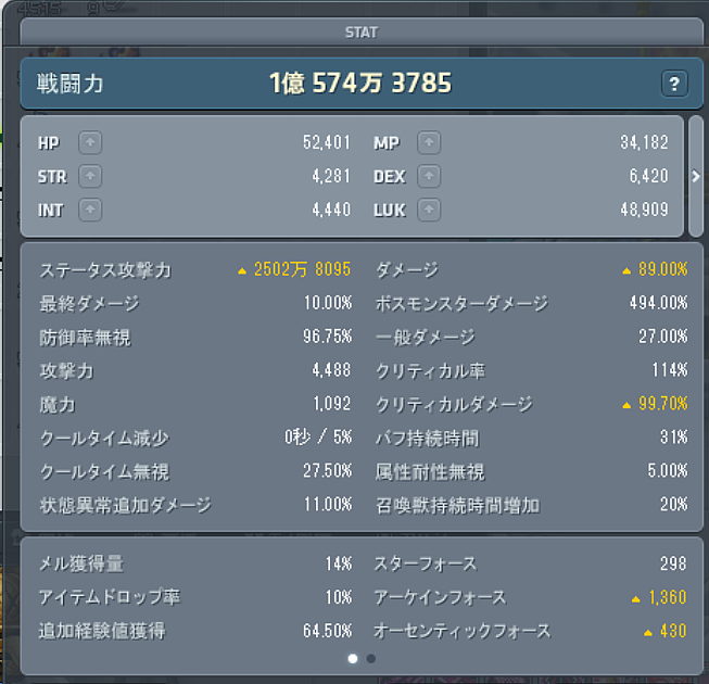 チャレ鯖書でジェネ武器をレジェにできたので、一億に乗ってた。HEXAも去年のハロウィンがヤバすぎてかなり強化されています。結構強くて、まあソロ圏内といったレベル感。